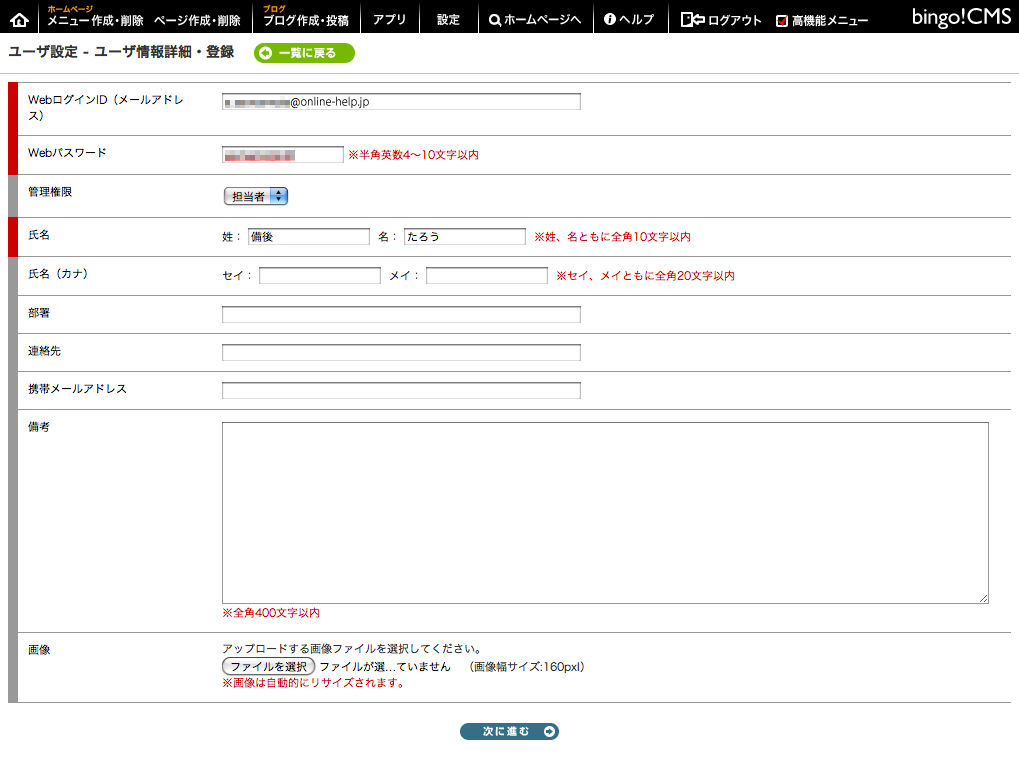 2.ユーザー情報詳細・登録画面の説明